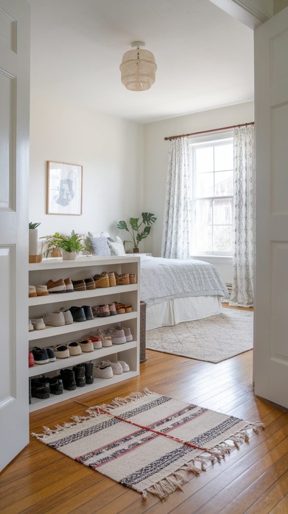 I always check whether I can walk freely without stepping over stuff. Shoes, bags, and clothes on the floor instantly create stress. Clearing pathways restores flow and ease.