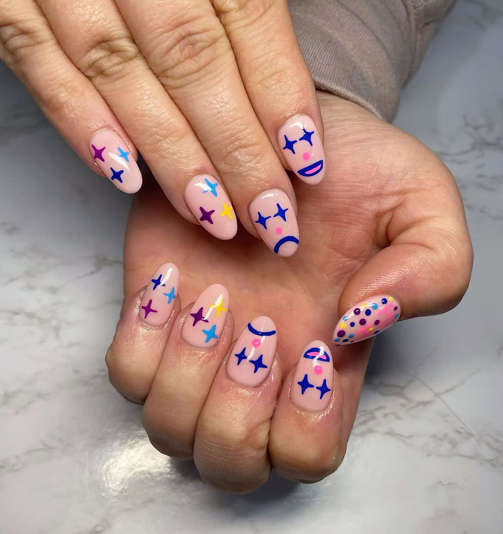 20. Playful Starry Abstract Nail Art