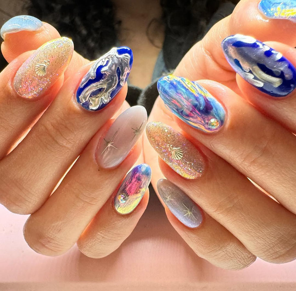 Pair this design with flowy dresses or a light blue outfit to really enhance the serene, water-inspired theme. It’s like having a little birthday wish floating on your nails!