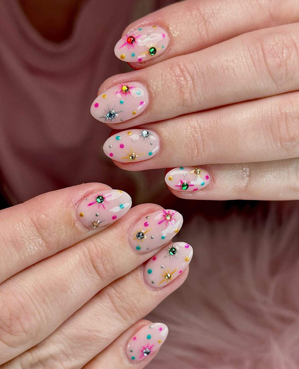 Pair these with a sparkly dress or a fun, colorful outfit to match the playful energy. These nails guarantee you’ll be the center of attention!