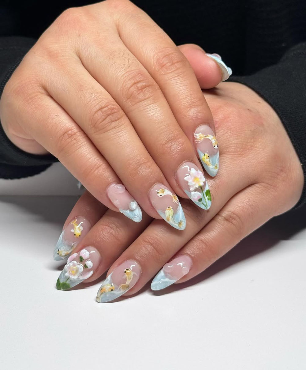 41. Dreamy Koi Pond Nails