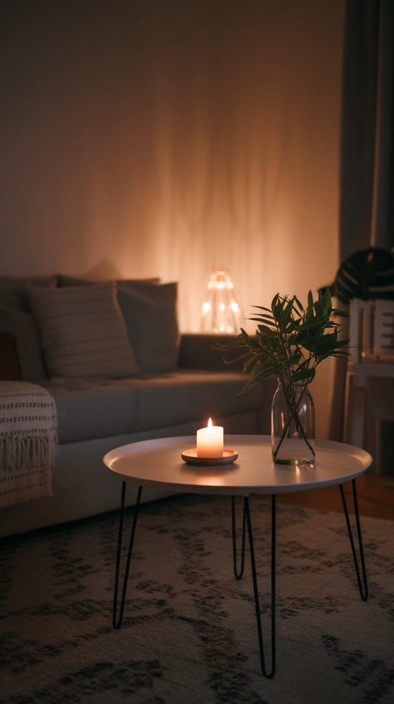 Candles, diffusers, or incense add warmth when used lightly. Choose comforting scents like vanilla, sandalwood, or soft florals.