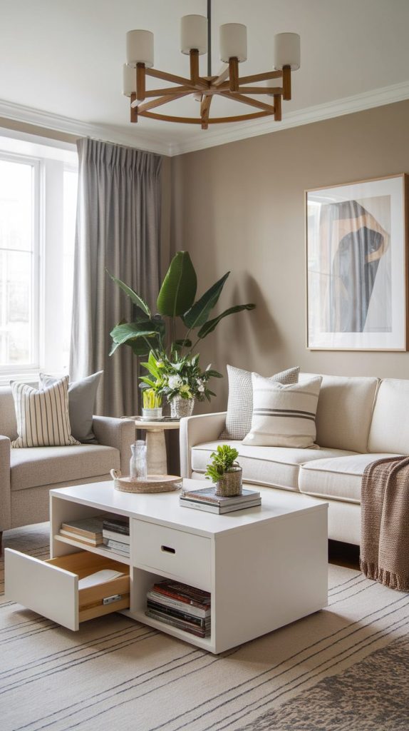 Ottomans, coffee tables with drawers, and benches with storage pull double duty. Hidden storage keeps essentials close without visual noise.