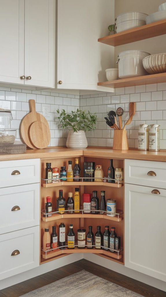 Corner cabinets love hiding things, and lazy Susans bring everything into view with one spin. I use them for oils and sauces, and I rarely knock things over now.