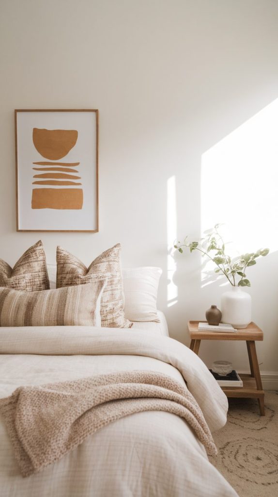 Choose decor that feels soft and grounding. Texture matters more than quantity.