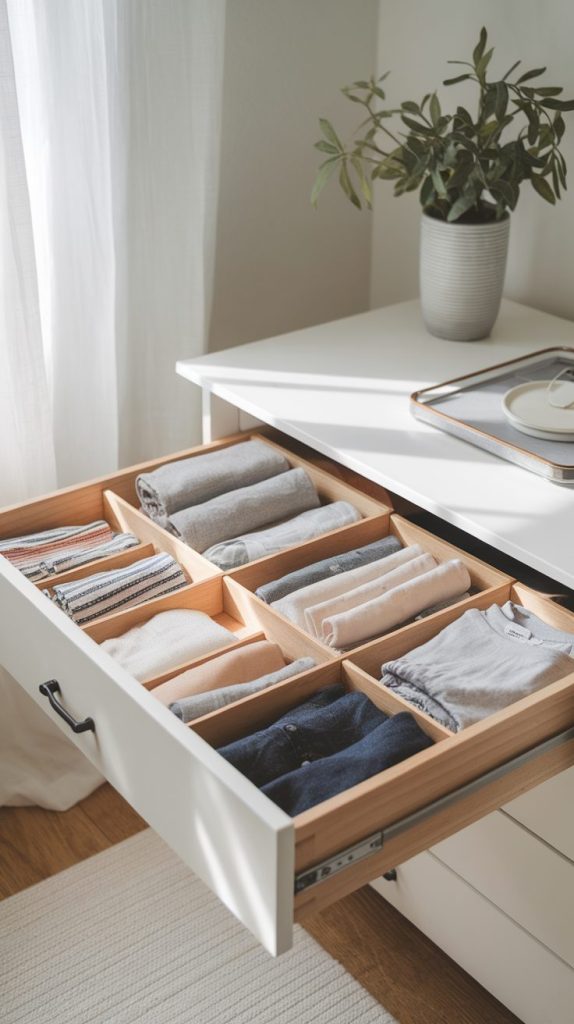Drawer dividers keep clothes visible and easy to grab, which saves time and mental energy. Ever tried finding socks in a messy drawer at 7 AM? Exactly.