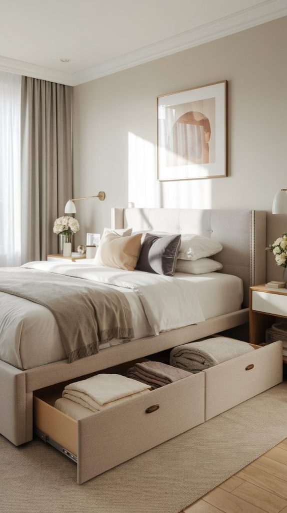A stylish bed can still work hard. Storage beds saved me when I lived in a smaller space and needed every inch.