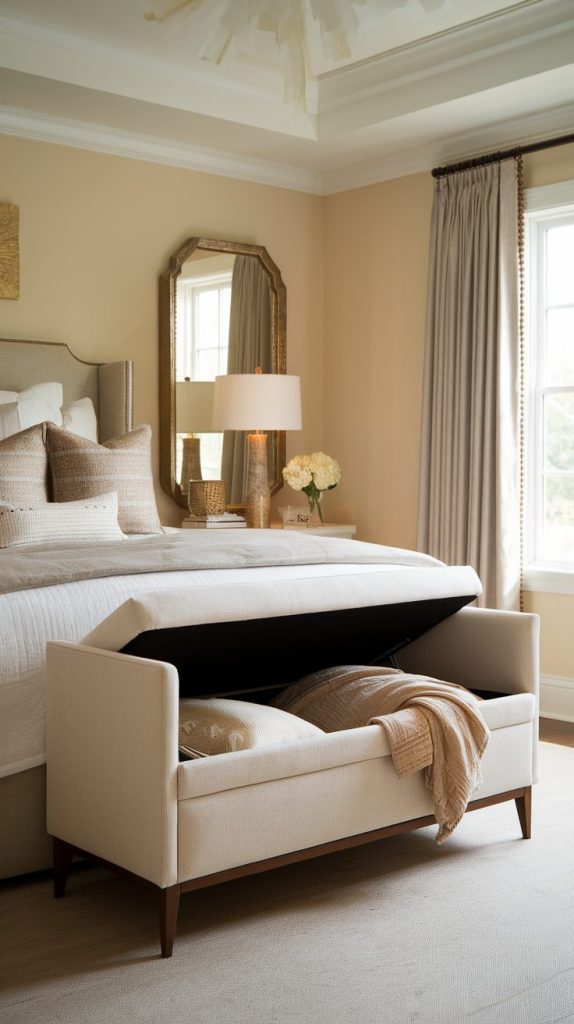 A storage bench at the foot of the bed feels classy and practical at the same time. I use mine daily and still wonder why I waited so long.