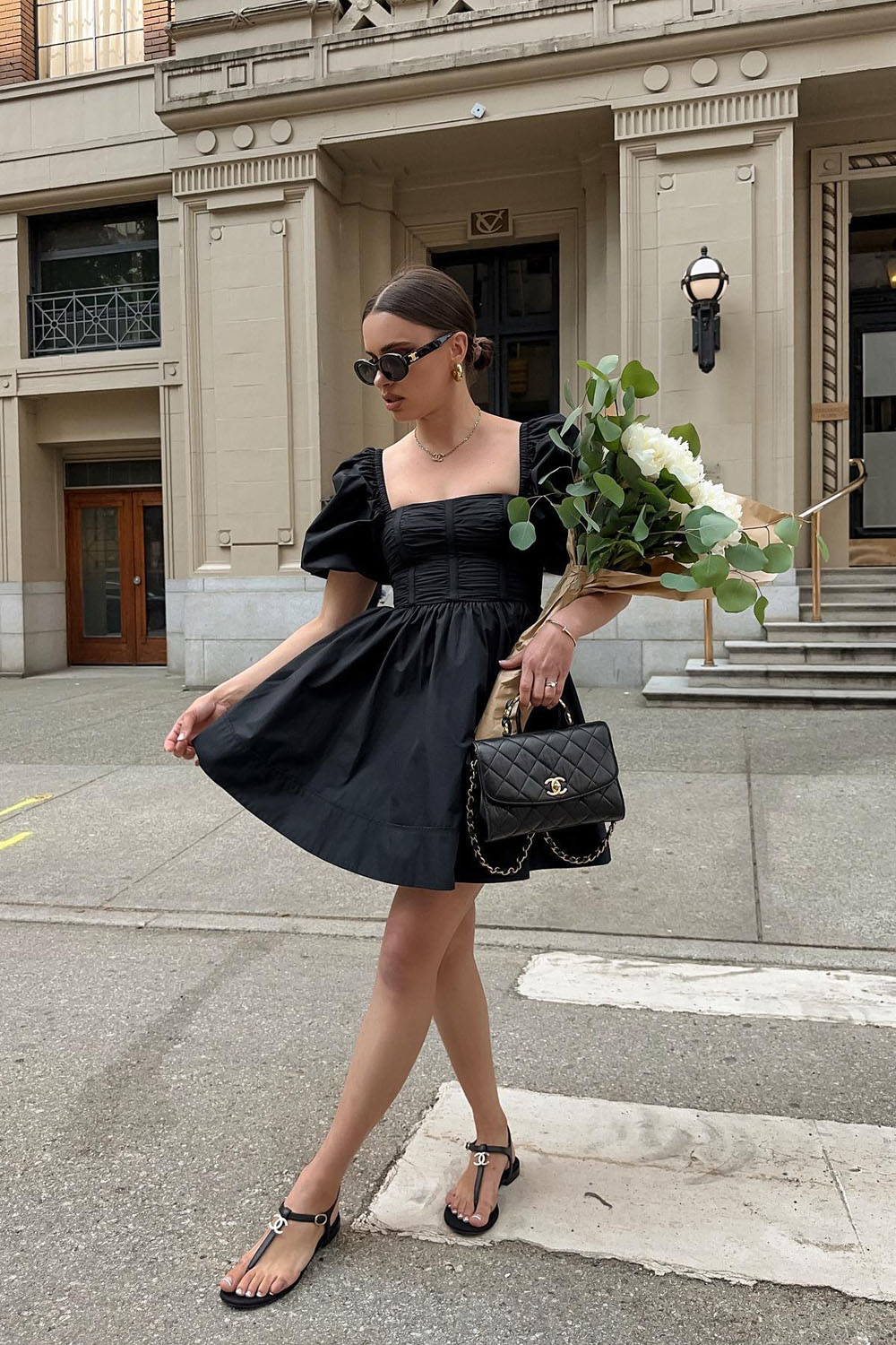 OMG this one’s a moment. A little black dress, but make it puff-sleeved and fabulous. The square neckline and fitted bodice are so flattering, and the flared skirt keeps it playful and breathable for summer heat. Plus, it looks stunning with a sleek bun, oversized sunglasses, and minimal sandals.