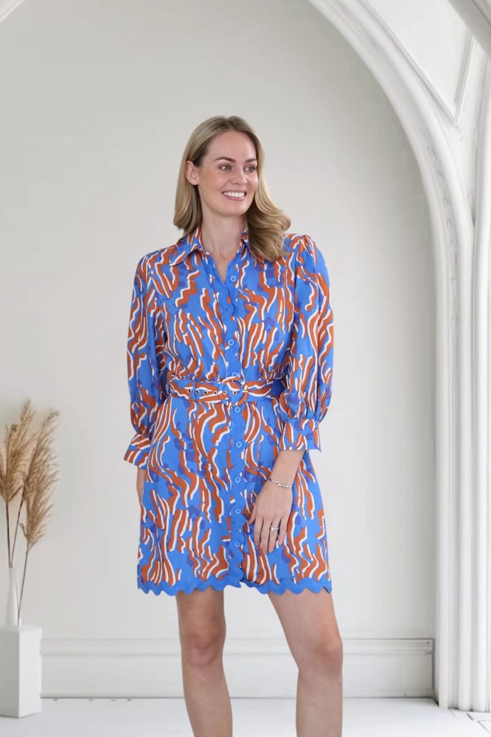 This one’s giving “fun mom with a wild side” and I’m HERE for it. The bright blue dress with bold orange print is so unique and stylish. Between the scalloped hem and belted waist, it feels polished but still fun. You could easily wear this to work, church, or weekend outings and feel like the cool mom who knows how to dress.