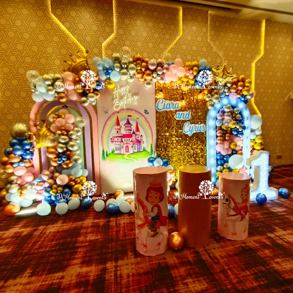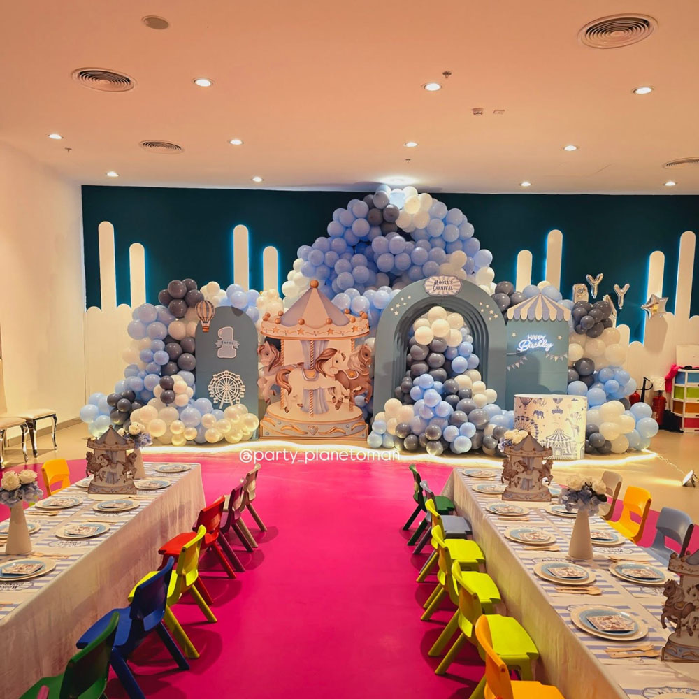 Step right up for the greatest birthday on Earth—twin edition! Use bright primary colors, striped tents, and balloon arches to create a carnival feel. Add in popcorn boxes, clown noses, and a photo booth with silly props.