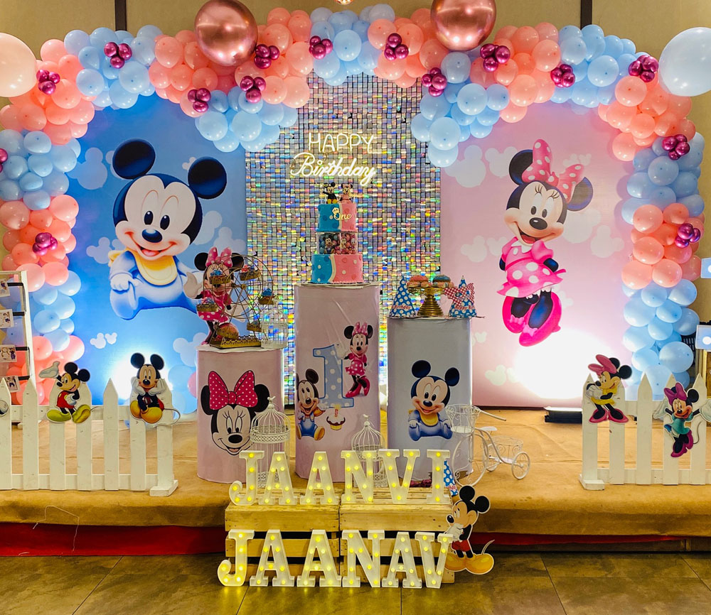 Use polka dots, mouse-ear balloons, and themed treats like “Mickey snacks” or cupcakes with fondant ears. Bonus: set up a cartoon screening area to keep little guests entertained.