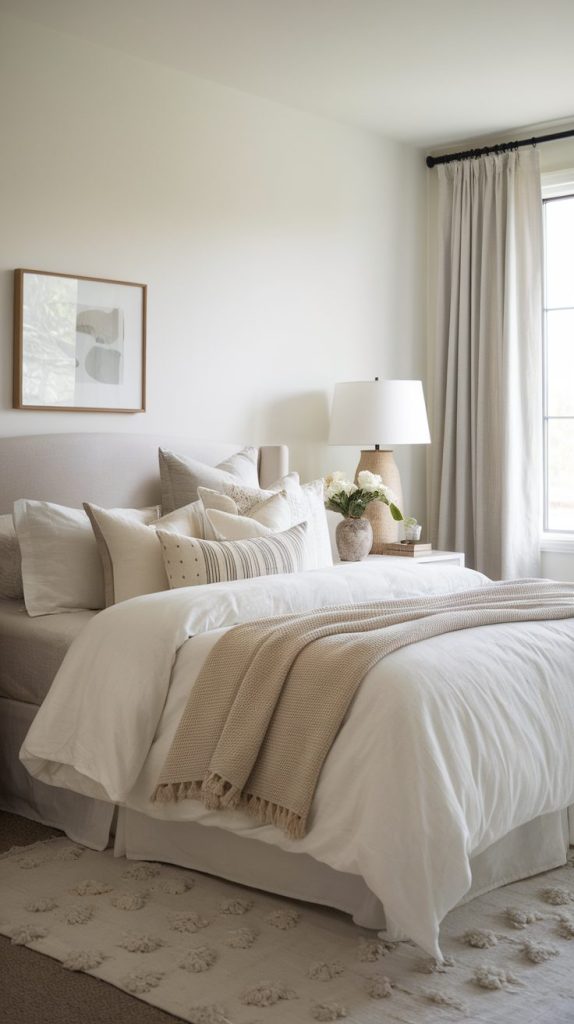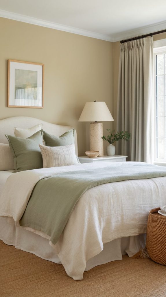 I love warm whites, soft beiges, sage green, and light gray. These colors create visual breathing room and help your brain relax without trying too hard. Loud colors belong in small accents, not everywhere.