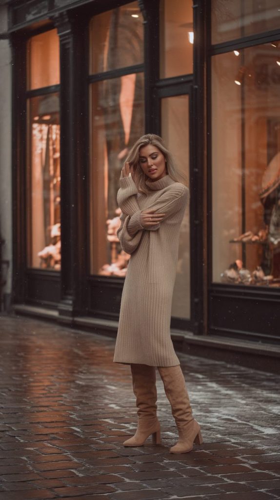 1. The Chic Sweater Dress & Knee-High Boots Combo