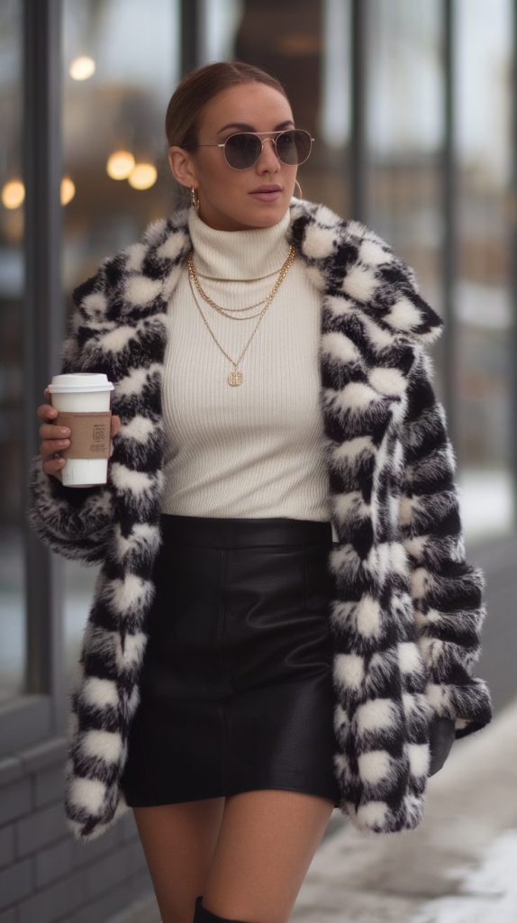 You can’t go wrong with a pair of well-fitted jeans and a killer coat. Think longline wool, plaid trench, or even faux fur if you’re feeling bold. The look says “effortlessly put-together” without trying too hard.