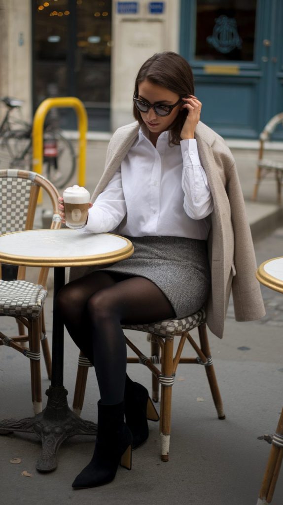 Pair a tweed mini or midi with a crisp button-up shirt, then layer a cashmere sweater over it for that layered, preppy vibe. Add opaque tights and heeled boots, and you’ve got an outfit worthy of both work meetings and weekend brunch.